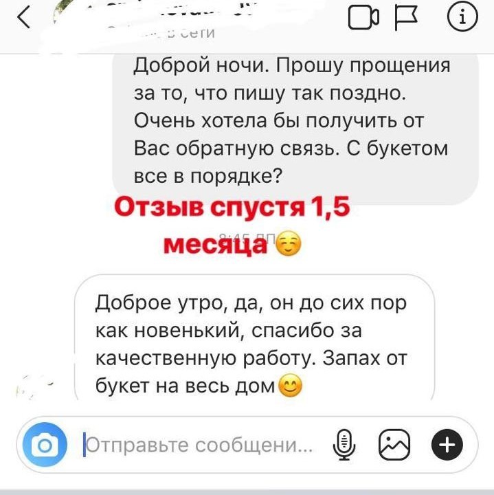 Официально начала этим заниматься с 11 ноября 2018 года. Когда получила первый заказ была очень рада, но боялась. Боялась того, что букет не оправдает ожиданий, либо что-то пойдёт не так. ⠀